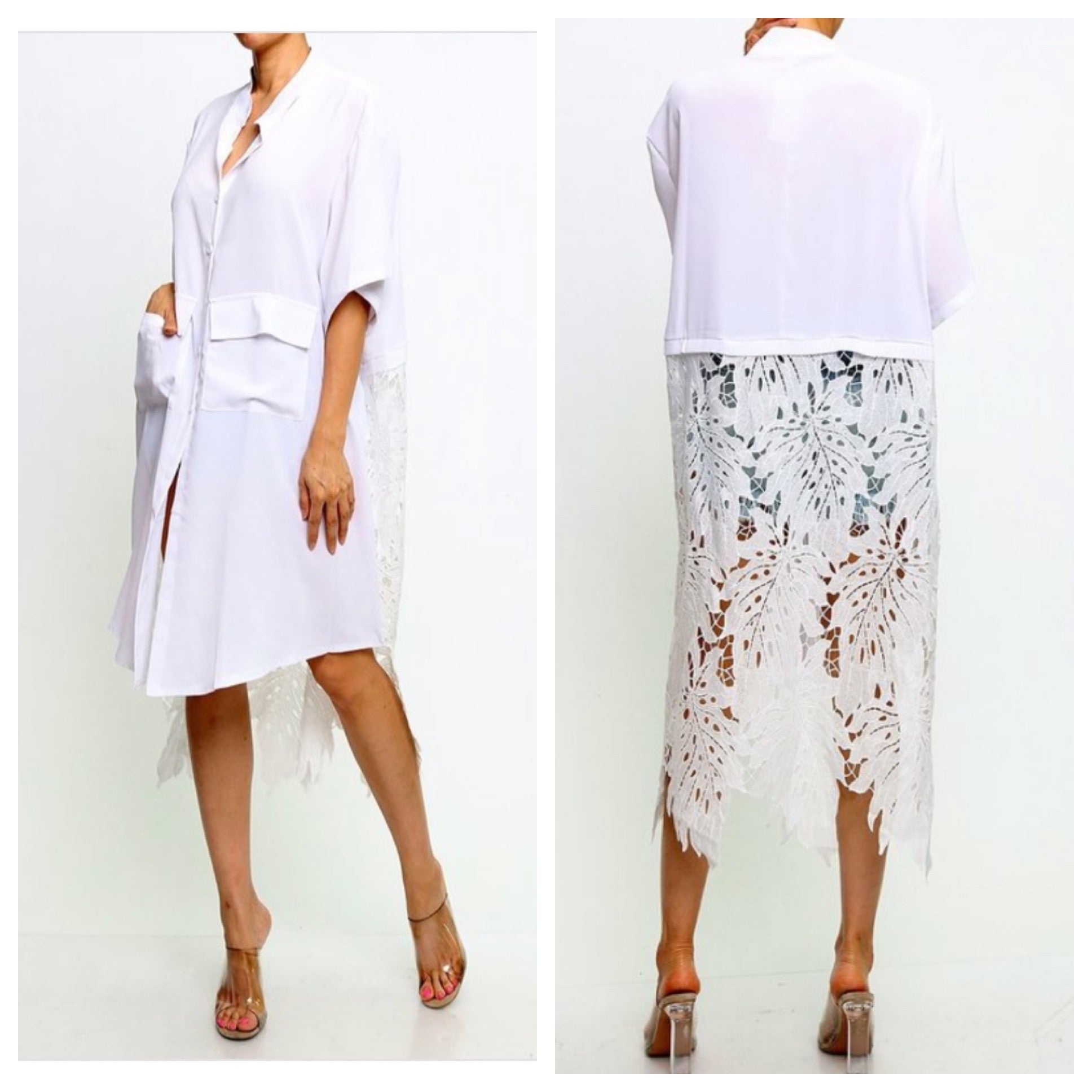 Oversized shirt with 2 front pockets & buttons up the front . Back has an open design to add a sexy look