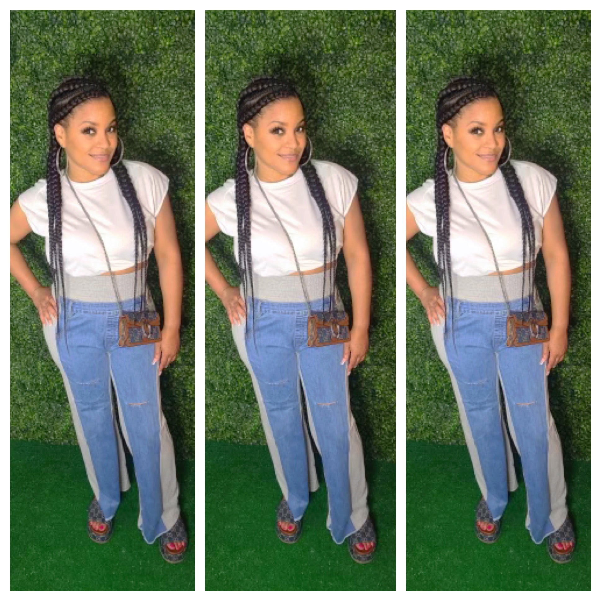 High waist Grey sweats with distressed denim front