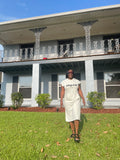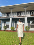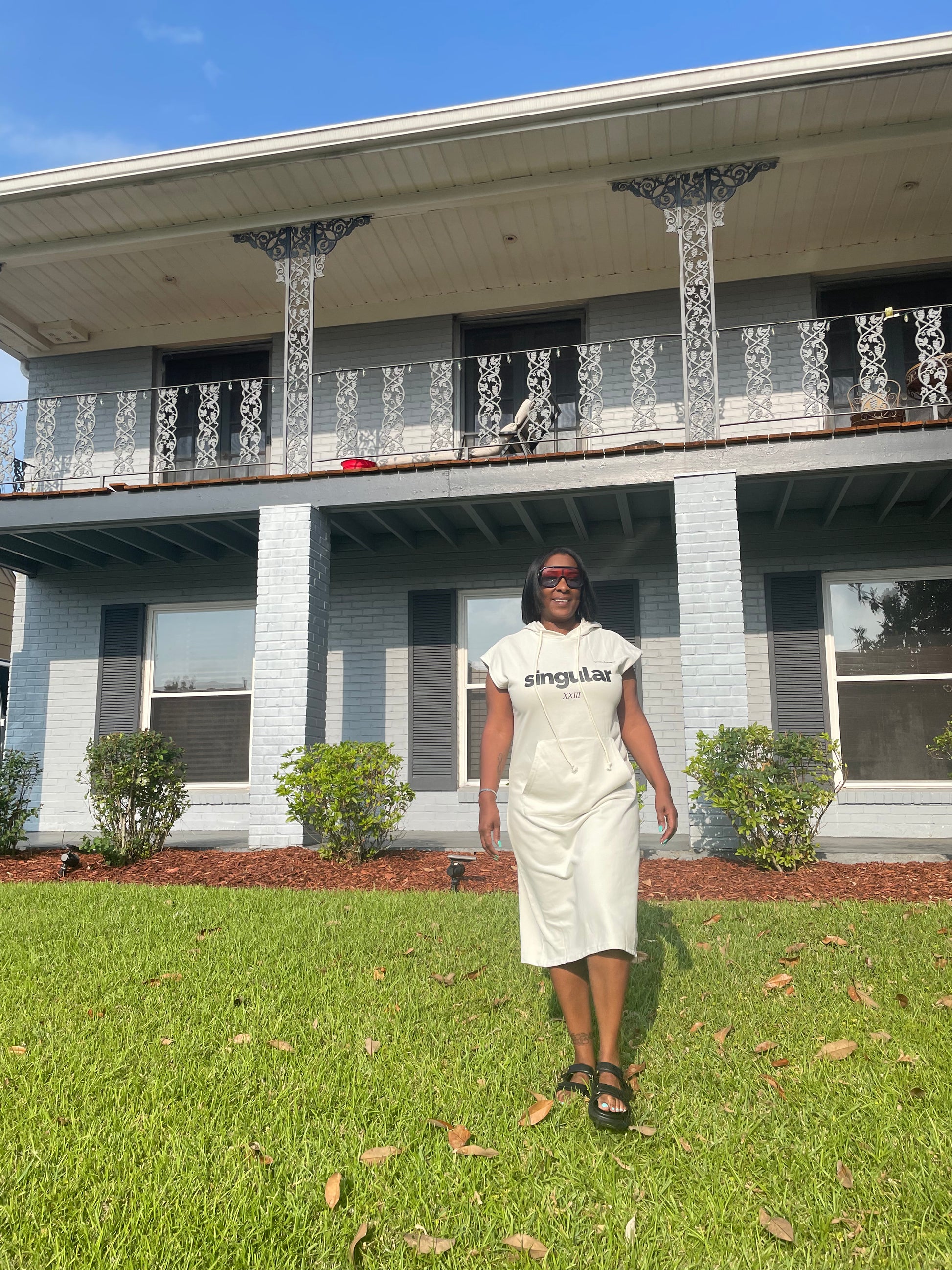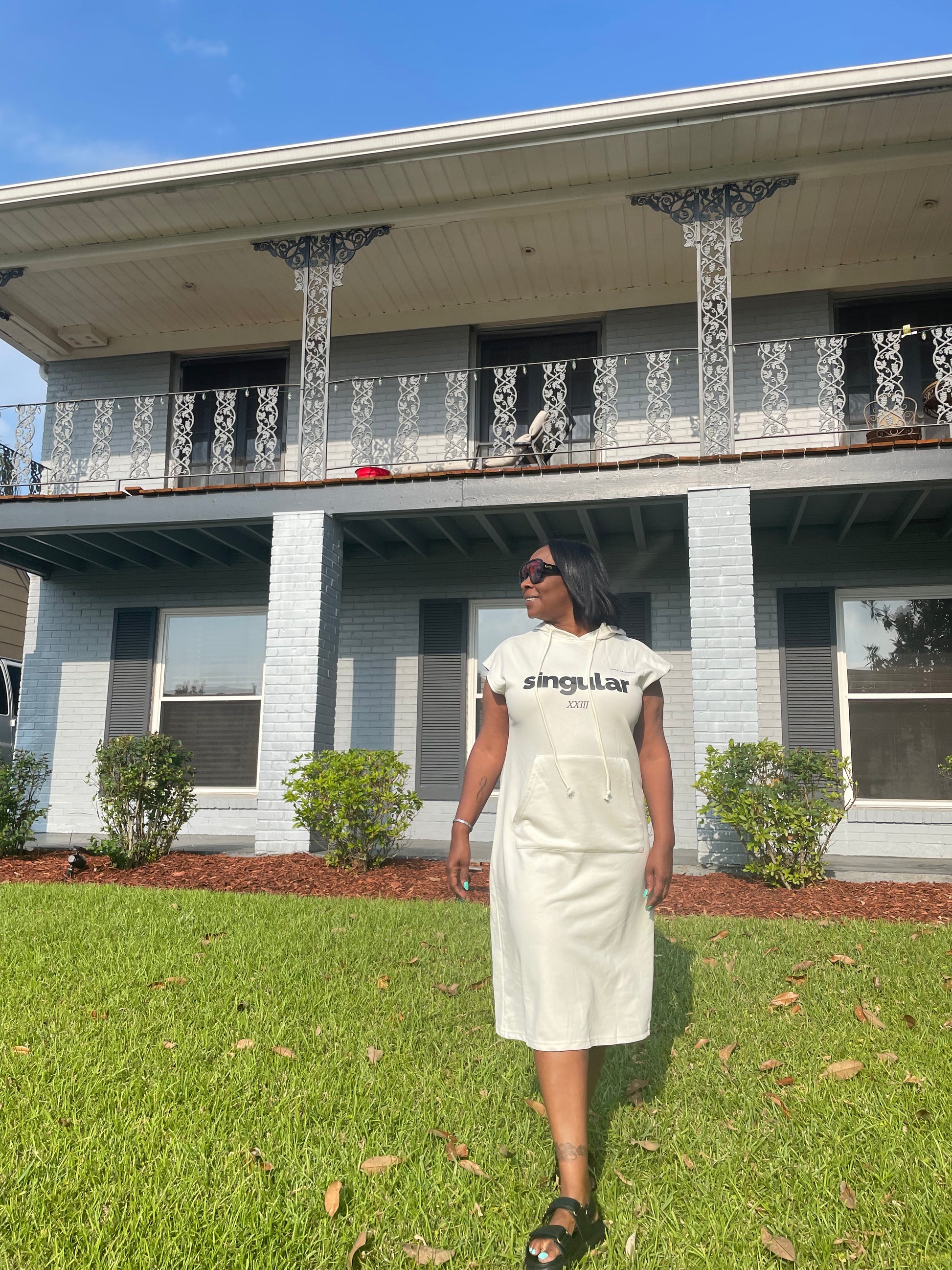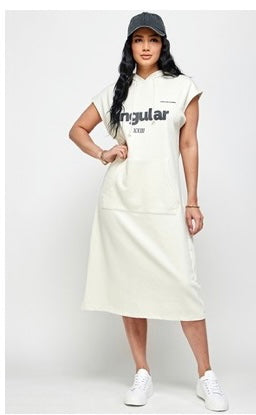 Cotton hoodie dress with front pocket & a message on the front